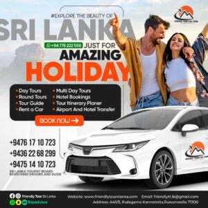 Planning your dream trip to Sri Lanka? Look no further! FriendlyTours offers comprehensive tour packages tailored to your preferences, ensuring a smooth and enjoyable vacation experience. From airport pickups and drop-offs to reliable car rentals with experienced chauffeurs and guides, we handle all the detailsโfuel, tolls, and moreโwithout hidden charges.