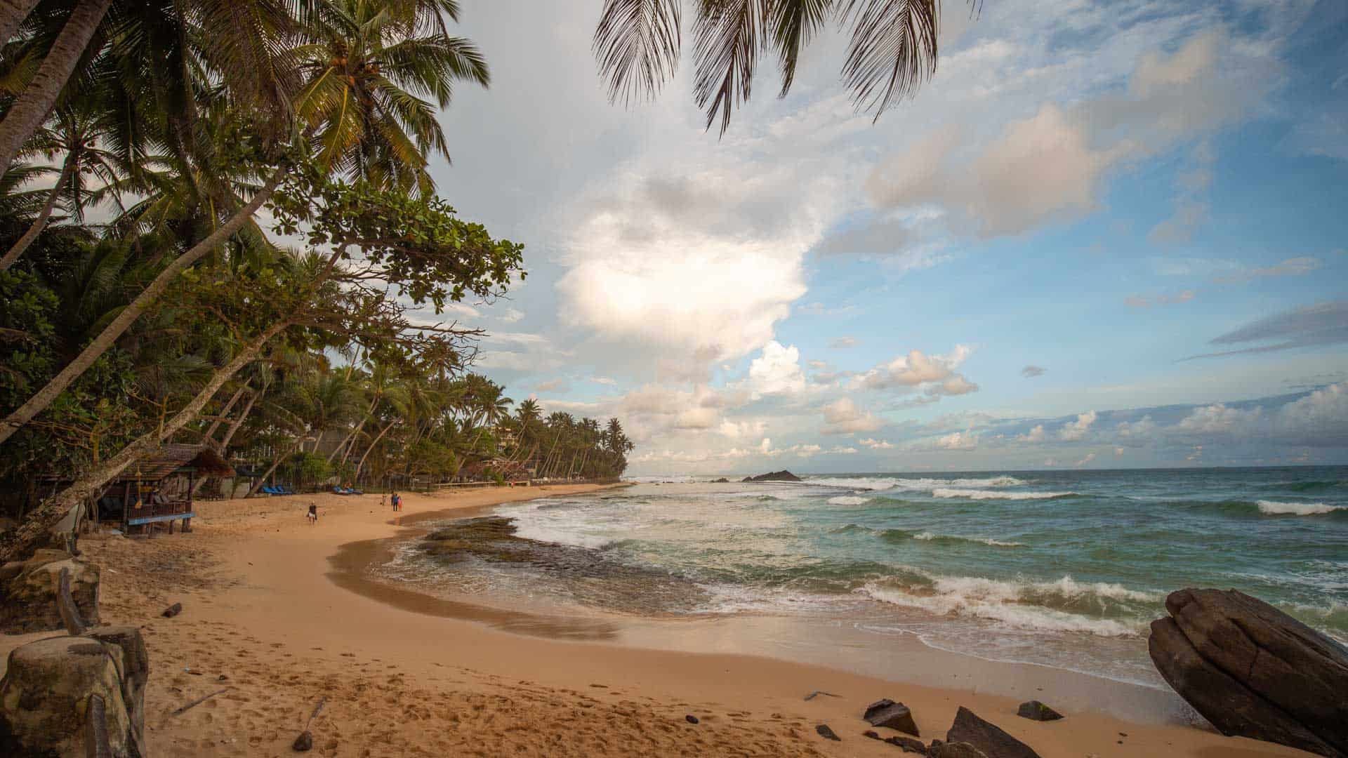 As the sun sets, Dalawella changes. The sky turns orange and purple. The famous palm tree becomes a dark outline. The beach clubs become quiet evening spots where people listen to music and the sound of the waves. This quiet time is the perfect end to a busy day.